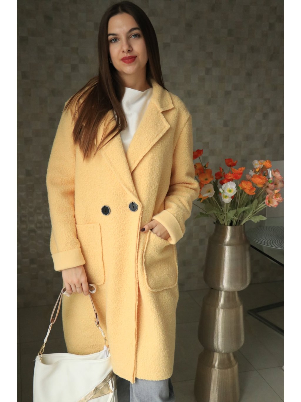 💛✨ Žlutý buklé beránkový delší kabátek – jarní kolekce ✨💛