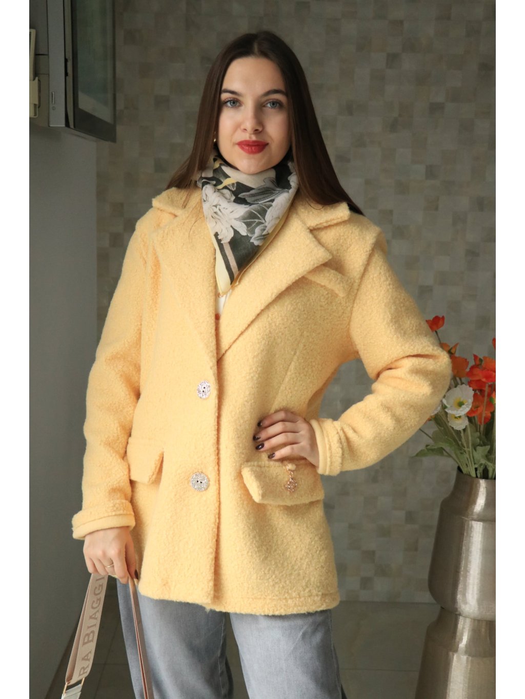 💛🧥 Žlutý buklé beránkový krátký kabátek – trendy a hřejivý 🧥💛