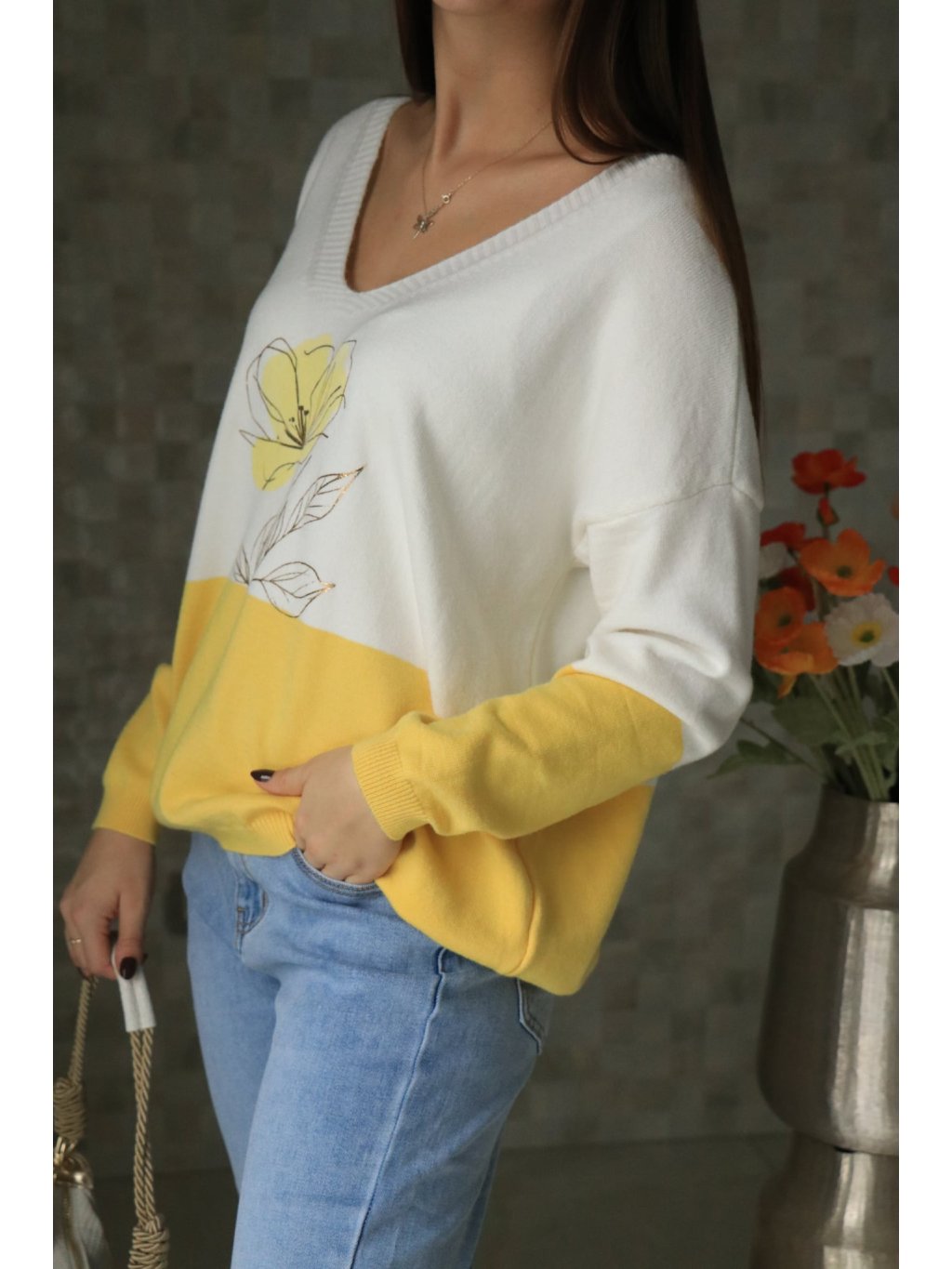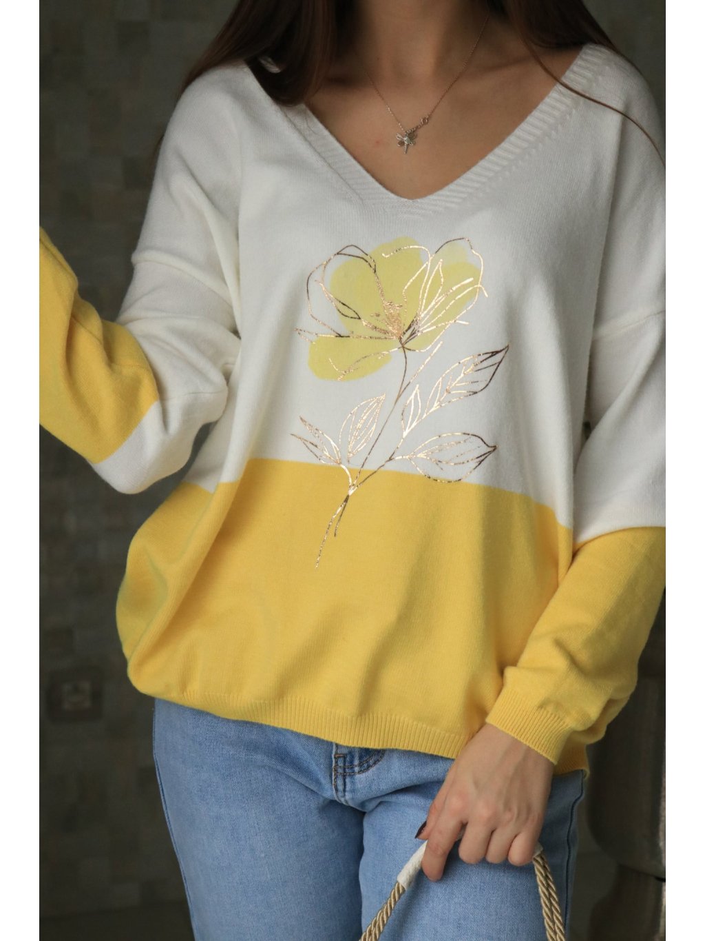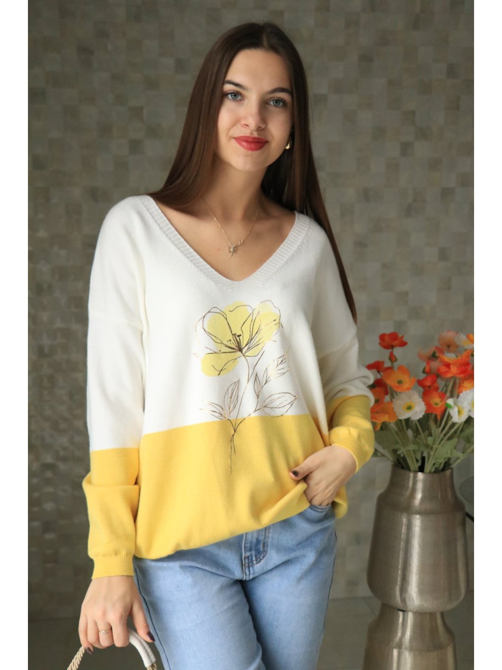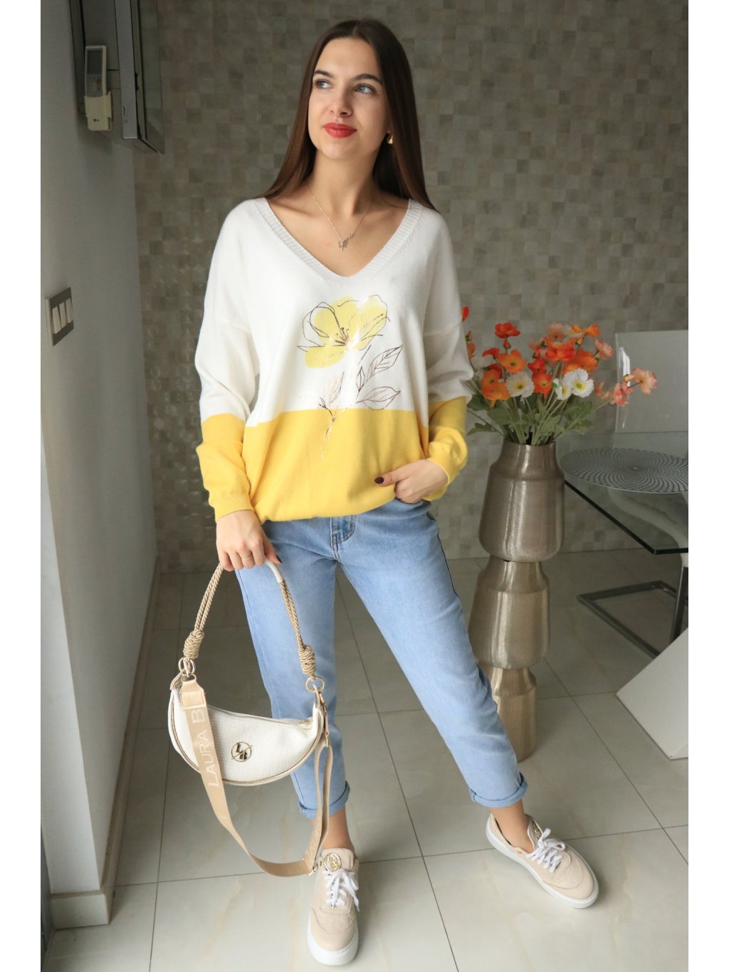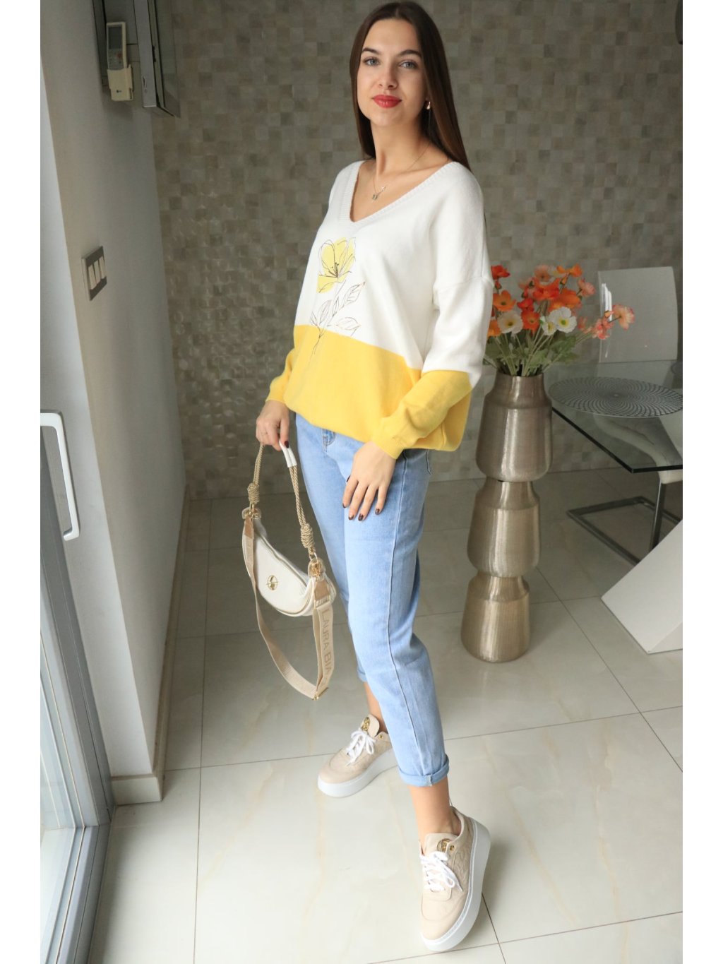 💛🌸 Žlutý svetřík s pruhy a květy – jarní kolekce 🌸💛